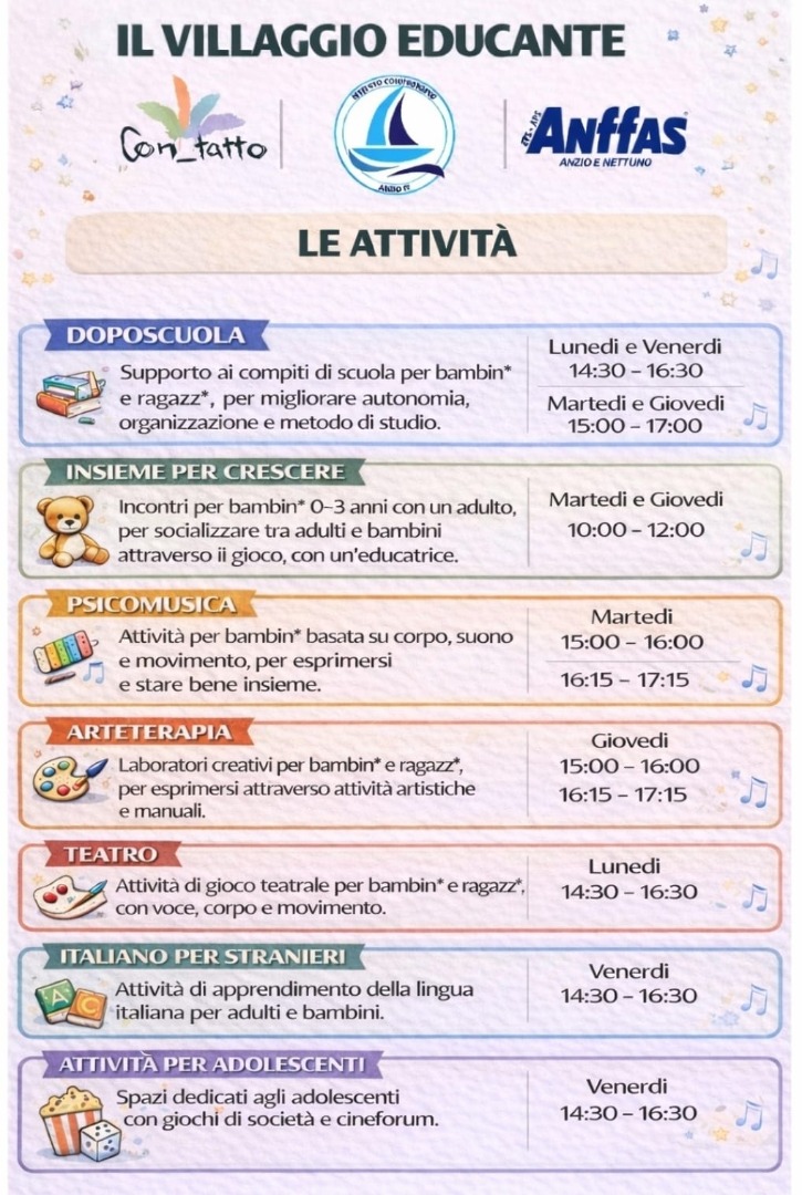 avvio le attività del progetto IL VILLAGGIO EDUCANTE in collaborazione con l’associazione APS